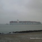 De Cosco Oceania is een containerschip van 349 meter lang en 46 meter breed. Ook dit schip werd in 2008 gebouwd, en heeft een diepgang van 11,5 meter. Dit schip kwam dus een stuk meer in de buurt van de afmetingen van de CSCL Star. Het schip werd opgepikt door twee van de vier sleepbootjes, en werd richting de ECT gebracht. Erg leuk om dat een keer te zien, en vooral hoe de sleepbootjes (achteruit) met het schip gaan meevaren, om de lijnen zo snel mogelijk te kunnen verbinden.