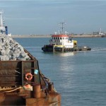 Op de tweede foto is goed te zien hoe ver de werkzaamheden al zijn, want op die plek was er in 2009 alleen nog maar water. De stortstenen worden samen met grote blokken steen door graafmachines en kranen op de goede plek geplaatst. De Compass gaat met haar sleep via de tijdelijke ingang de Maasvlakte 2 in. Na een tijdje nam de Smit Bever de bak van de Compass over, om deze daarna af te leveren op de juiste plek. Geïnteresseerd in meer foto’s van deze operatie? Download de PowerPoint-presentatie via de bron.