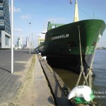 Gisteren viel me op dat het containerschip dat ik eerder deze week gespot had, meteen weer weg was toen ik op school kwam. Gelukkig lag er vandaag toch weer een nieuw schip voor de kade van het STC, namelijk de Bornholm. Dit schip is een vrachtschip dat in dienst is voor de rederij Buss. Het schip zelf is 118 meter lang, en 15 meter breed. De Bornholm vaart onder de vlag van Cyprus, en heeft een diepgang van 5,1 meter. Wat me wel opviel, is dat op de foto van dit schip op de website van de rederij zelf, de brug heel anders is als zoals die er nu uitziet, en dat het schip op die foto blauw met rood geverfd is. Wellicht is het schip een tijdje geleden (voor een gedeelte) opgeknapt. Ook was het opvallend dat dit schip andersom aan de kade lag dan normaal, namelijk met de brug aan de kant van de Jobshaven. Maar dat maakt natuurlijk niets uit, een keertje verandering kan nooit kwaad.