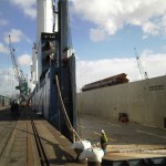 Gisteren ben ik met drie vrienden naar de Waalhaven afgereisd, om daar een rondleiding te krijgen van iemand van Rolldock op de Rolldock Sun. Maandag zagen we de Rolldock binnenkomen, terwijl we op school zaten, en toen kwamen we op het idee om contact te zoeken met deze rederij, om te vragen of het mogelijk was om een rondleiding te krijgen. Dit was goed, en zo stonden we dus gisterenmiddag voor de slagboom bij kade waar de Rolldock Sun ligt. We kregen een rondleiding door heel het schip: van de brug tot het laadruim. De Rolldock Sun is een schip van 142 meter lang, 24 meter breed. Het bijzondere aan dit schip is dat de lading er op drie manieren op geladen kan worden: via de kranen, door af te zinken, en via de grote ‘deur’. Het schip is in 2010 afgeleverd, en heeft een diepgang van 4,7 meter. Ik vond het erg leuk om dit schip eens van dichtbij te bekijken, en ik heb er dus flink wat foto’s van gemaakt. Wie weet ga ik wel stage lopen op dit schip, of op één van de zes nieuw bestelde schepen van Rolldock..