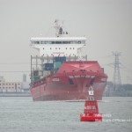 Terwijl de MSC Zambia binnenliep, was de Maersk Dauphin juist onderweg naar zee. Ook de Amerdijk, DC Vlaanderen 300 en Zeearend en Markab voeren naar zee. Een aantal video’s hiervan staan op YouTube. Ook is daarin de Zeearend van de Kustwacht te zien, die met een zeer hoge vaart voorbij kwam. Hoewel het laag water was, spatte het water door de wind over de pier heen. Dit is ook in de video te zien, aangezien ik mijn camera toch maar even in veiligheid bracht.