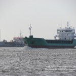 Enige tijd later kwam vrachtschip de King Hadley voorbij. Dit schip werd bij binnenkomst begeleid door de Smit Elbe en de Smit Seine. Ook Van Oord’s baggerschip de Geopotes 15 is te zien.