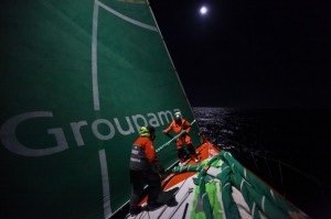 De schipper van Groupama, Franck Cammas, heeft laten weten dat de 31 meter lange mast vlak boven de eerste zaling gebroken is. Het incident gebeurde ongeveer 60 mijl ten zuiden van Punta del Esta. Niemand van de crew is gewond geraakt. Er is wel een zeil kapot gegaan en er wordt nu zoveel mogelijk gedaan om deze te redden.