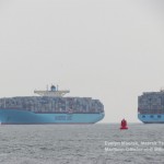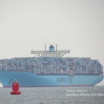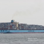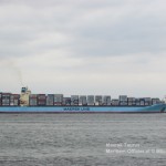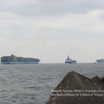 Naarmate de middag vorderde, liet de zon steeds minder van zich zien, en leek het eigenlijk tijd om richting huis te gaan. Toch werd deze keer het beste tot het laatste bewaard: twee containerschepen van Maersk. De Maersk Taurus kwam vanaf de APM Terminal op de Maasvlakte en zette koers richting zee, en er was al lange tijd te zien hoe Evelyn Maersk koers zette richting Maasmond. Het werd in de tussentijd hoog water, en door de vrij harde wind sloegen er geregeld golven over de pier heen, maar het wachten en de natte schoenen waren het waard: ik heb vele mooie foto’s kunnen schieten van beide schepen. Verder had ik ook nog een korte video gemaakt toen de Evelyn Maersk aan de kant van de Maasvlakte de Splitsingendam passeerde.