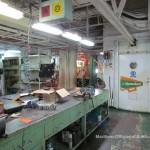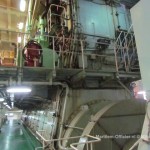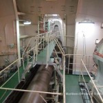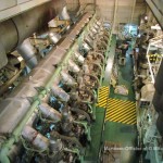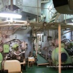Van begin tot eind: de hoofdmotor (van boven gezien), de hoofdmotor (vanaf de achterkant gezien: dit gedeelte bevindt zich onder de vloerplaten die je op de eerste foto ziet), de schroefas, één van de vier hulpmotoren, schakelborden, zeekoelwaterpompen, HT-warmtewisselaars, hoofdstartlucht-compressoren en -reservoirs, zware olie-seperatoren, de verdamper en de cilinderkoelwaterpompen, de hulpketels en de werkplaats.