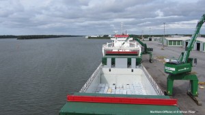 Ja hoor, we zijn onderweg naar Algarije! Welke haven we naar toe gaan is nog niet bekend, maar dat maakt niet uit. Voorlopig zijn we er toch nog niet. Op moment van schrijven liggen we ergens op de Noordzee waar we toch wel wat drukkere dagen achter de rug hebben. Het laden in Kaskinen verliep voorspoedig, de stuwadoors verstonden hun vak erg goed en het ruim werd dan ook al puzzelend vakkundig volgelegd met hout. Echter paste niet al het hout in het ruim en moest er dus een deklast gezet worden. Dit vraagt enige voorbereiding en hier zijn we dus ook optijd mee begonnen. Ruim 2 was al afgetopt met hout en de luiken konden ’s ochtendsvroeg om een uur of 6 voorbereid worden. We hebben grote stevige zeilen “tarplins” aan de randen van het dek gelegd. Het hout kon nu geladen worden. Toen de 2 lagen hout (ongeveer 2.5 meter hoog) lagen konden de tarplins over het hout heen getrokken worden. Hierdoor creëer je een grote verpakking op je dek. Vervolgens hebben door middel van kettingen het hout vast gesjort aan het dek. Het opspannen van de kettingen gebeurd met 4 mensen, er komt behoorlijk wat spanning op te staan.