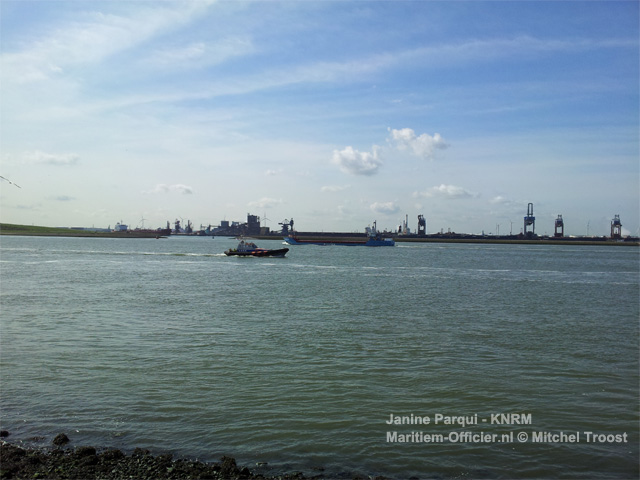 Na de demo was het dringen geblazen voor het meevaren met de Parqui. De tweede vaart was er dan ook nog geen plek, maar ik stond wel zo goed als vooraan voor de derde vaart. Toen iedereen met zwemvest en al aan boord was, konden we vertrekken. We gingen eerst een stuk Nieuwe Waterweg op, waarna we via het Calandkanaal naar wat gemeerde bulk carriers gingen. Best een gaaf gezicht van zo laag boven het water. We vervolgden onze weg daarna weer richting de Berghaven, waar we weer aanmeerden en we weer plaats maakten voor de volgende groep.