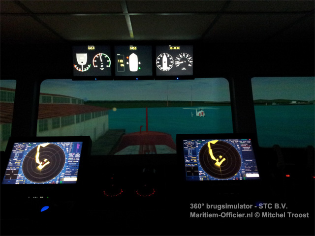 Na ongeveer één periode lang simulatortraining te hebben gehad op de brugsimulatoren, was het vandaag zaak te laten zien wat we geleerd hadden, want het examen stond op het programma. We werden vanochtend ingedeeld in vier groepjes van drie personen, waarmee we als loods, kapitein en roerganger gingen varen.