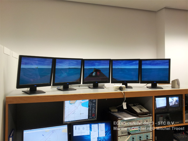 Vandaag was de derde en laatste dag van de ECDIS-cursus. Vandaag hielden we ons vooral bezig met het laden, updaten en kopen van kaarten. We begonnen echter met de door ons voorbereide reis op de simulator. Door deze reisvoorbereiding naar een usb-stick te exporteren, konden we deze inladen in de ECDIS van de simulator. Daarna werd de simulatie gestart.