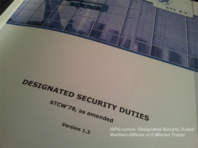 Voor de verandering hadden we vandaag een cursus met alle derdejaars studenten HBO Maritiem Officier. Tijdens de cursus ISPS Designated Security Duties hebben we vele aspecten rondom de beveiliging van schepen behandeld. Denk hierbij aan het beveiligen van het schip tegen piraten, overvallen, bommen, het smokkelen van wapens en drugs, verstekelingen en terrorisme. Onder andere de ‘safety levels’, procedures en regelgeving werd behandeld.