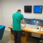 Zo pas je de theorie in de praktijk toe. Met de juiste koersen uitgewerkt kan je dan eindelijk gaan varen. En dat hebben we dan ook gedaan! We hebben namelijk een aantal lessen op de simulatoren gehad waarbij je die koersen (welke je eerder had uitgewerkt) daadwerkelijk ging sturen.